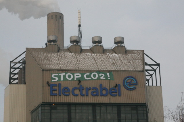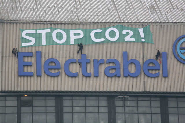 Op deze laatste dag van de Klimaat conferentie in Kopenhagen hangen op dit moment klimaatactivisten een spandoek aan de kolencentrale van Electrabel in Nijmegen. Deze centrale is met 90 meter één van de hoogste gebouwen in Nijmegen. Op het 60 m2 grote spandoek valt te lezen “stop CO2 !”, direct boven het logo van Electrabel. Hiermee willen de activisten aangeven dat er een omslag in het klimaatdenken dient plaats te vinden. Klimmers hangen spandoek aan kolencentrale in Nijmegen. Op deze laatste dag van de Klimaat conferentie in Kopenhagen hangen op dit moment klimaatactivisten een spandoek aan de kolencentrale van Electrabel in Nijmegen. Deze centrale is met 90 meter één van de hoogste gebouwen in Nijmegen. Op het 60 m2 grote spandoek valt te lezen “stop CO2 !”, direct boven het logo van Electrabel. Hiermee willen de activisten aangeven dat er een omslag in het klimaatdenken dient plaats te vinden. De keuze voor de Kolencentrale was een makkelijke, aangezien zij de grootste vervuiler van Nijmegen e.o. is. Zo stoot deze 27-jaar oude kolencentrale jaarlijks miljoenen tonnen CO2 uit. Sterker nog, Electrabel heeft plannen om een nieuwe kolencentrale te bouwen in de Maasvlakte. De groene stroom van Electrabel is door Greenpeace België onlangs nog gekwalificeerd als de slechtste groene stroom. Het bedrijf slaagde erin een negatieve score te behalen. Eén van de argumenten is dat Electrabel zich beperkt tot het bijstoken van biomassa in oude kolencentrales. Zoals de centrale in Nijmegen. Dit terwijl duurzame alternatieven die geen CO2 uitstoten ruimschoots aanwezig zijn. Frans Eppink: “Volgens ons is er geen ruimte voor bouw van nieuwe kolencentrales en moeten bestaande kolencentrales gesloopt worden of verplicht al hun CO2 afvangen en bergen, zonder dat dit ten koste gaat van budgetten voor duurzame energie.” Steenkool is wereldwijd de grootste veroorzaker van klimaatverandering. Eén nieuwe kolencentrale stoot net zoveel CO2 uit als twee miljoen auto's! Kolencentrales stoten naast CO2 ook giftige stoffen zoals NOx, SO2, fijnstof, zware metalen en dioxines uit. Er is met spoed een omslag naar duurzame energie nodig. Door geen nieuwe kolencentrales te bouwen maar die te vervangen door duurzame energiebronnen, worden belangrijke stappen gezet om klimaatverandering te voorkomen. Deze actie is de afsluitende van een reeks lokale protesten die zijn georganiseerd rondom de Klimaattop in Kopenhagen door de gelegenheidscoalitie “Klimaatactie Nijmegen”. Voor eerdere acties en achtergrond info zie: