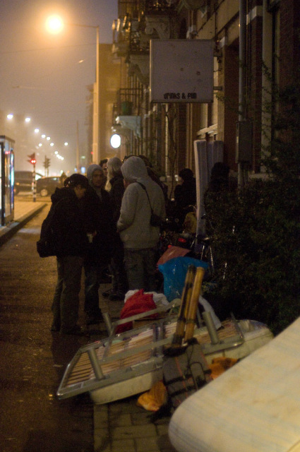 SO to clarify what happened; there was one squatter inside the building with no curtains so the whole world could look inside and see that he was on his own. Not only this the door was unsecured and I was told that when the 'knokploeg'came to the door it was duly opened for them. A group of squatters gathered outside and the police mediated the situation, eventually they made the decision to come in force (about 50-60 cops) and to return the house to the evicted squatter. This act by the police showed they will not tolerate self-organisation and actions carried out without their permission. The police also made clear that they will allow this form of squatting, begging for their protection and following their rules. This shows some of the big problems of the squatting movement/scene [delete as appropriate]. The squatter or his group showed a lack of respect to the efforts made by other people to give him/them the possibility to live there, this is demonstrated by his/their ignorance of advice to secure the door properly (with a bouwstempel for example). This incident also highlights the lack of room given by the squatting scene/movement for self-organisation by the fact that there are institutions in place to do almost everything for you if you want to squat (the KSUs). Closely related to this is people limiting their own self activity by relying on the network of squatters and the KSUs. The incident highlights this precisely because if you put really alot of effort into something, or if you try really hard to achieve something you do not give it up easily i.e. if the group that squatted the house had of done everything for themself then they would sure as hell have made the door secure and would of occupied the building properly. On the other hand if you get something without trying you throw it away just as easily. Contrasting the behaviour of the squatters in this instance was the knokploeg. The knokploeg may have been friends of the owner, former employees or as it appeared mostly people who used to drink in the bar. Whoever they were they got together decided that they wanted the squatters to be kicked out of the house and went and achieved it until the police interfered. On this analysis, which is entirely my own, I feel more affinity with the knokploeg. You can argue that the intentions of the knokploeg or the owner are evil, but I saw the 'knokploeg'sitting inside having a beer and making fun with one another after self-organizing and achieving their goal. At the same time as this group of friends, as it seemed, were enjoying themselves the squatters, who suppose themselves autonomous, were talking to the cops and begging them to get the house back for them. Kind of like spoilt rich kids who get robbed by the poorer kids when they get to high school. The first rule of life in the big world is; DON'T TALK TO THE COPS. They don't do anything just to help you, they do what they do to protect property and to passify the people. The second rule of life in the big world is; IF SOMEONE HAS BAD INTENTIONS TOWARDS YOU, MAKE IT AS DIFFICULT AS POSSIBLE FOR THEM. Thats for your own self protection, lock the door if your house could be under threat, keep your wits about you. | | foto | nn - 21.01.2010 22:09