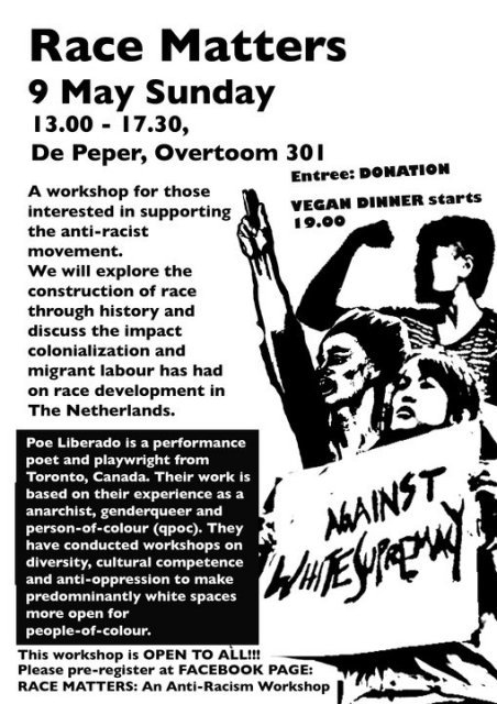 anti-racist movement.We will explore the construction of race through history and discuss the impact colonialization and migrant labour has had on race development in The Netherlands.