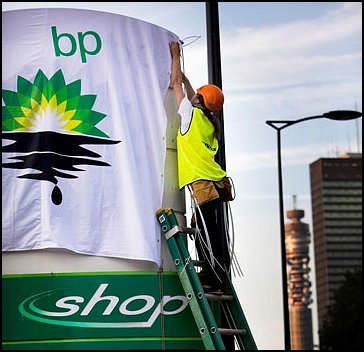 Actievoerders van Greenpeace blokkeerden de stations en plaatsten borden met daarop de tekst 'Closed. Moving beyond petroleum'. Op het tankstation in de noordelijke wijk Camden werd het BP-logo vervangen door een nieuwe versie, waarop de groen-gele zonnebloem van de Britse oliemaatschappij wegzakt in een zee van olie.