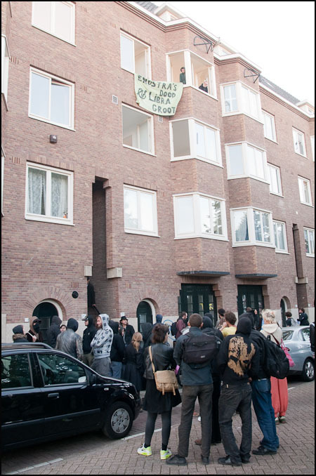 Berichtje over de civiele zaak dan maar de dagvaarding enzo Twee dagen na de kraakactie kwam een dagvaarding binnen voor 2 van de 3 bezette woningen. Libra stelde dat 21/2 op het punt stond om verkocht te worden (koopcontract was nog niet getekend) en dat 21/3 verhuurd zou worden, met dien verstaande dat dit in afwachting van verkoop zal gebeuren en aan de toekomstige koper is toegezegd. De krakers moesten trouwen reeds op donderdag 8 september 2010 voor de rechtbank verschijnen, dus nauwelijk 48 uur na uitbrengen van de dagvaarding. Ter nauwernood is het op het laaste moment nog gelukt een advo te scoren die wel op tijdstip kon pleiten. Hij heeft net nog 24 uur voor de zitting een pak productuies van 80(!) paginas mogen ontvangen. de zaak zelf Gezien er weinig twijfels waren over 21/2 en de kopers zelf ook aanwezig waren, is besloten over deze etage verstek te laten gaan. Wel is in de zittuing over de grotere bovenwoning dit expliciet aangehaald, met als reden dat men Libra en niet een eigenaar bewoners als politieke tegenstander beschouwdt. Wat de woning op 21/3 betreft werd in de zaal duidelijk dat de 'huurder' een vriendje van de makkelaar is die dus zijn kraakwachtenwoning uitmoet en daar gaat zitten. De woning zelf wordt dan uiteraard nog steeds tot verkoop aangeboden. Door de advo van de krakers werd nog eens duidelijk gemaakt dat het dan tus om een 'tijdelijke huurovereenkonmst' gaat waarvoor ex leegstandswet een vergunning nodig is , die Libra uiteraard niet heeft. Ook de achtergronden van Libra vermogensopbouw worden uitgebreid belicht. De uitspraak is overigens pas donderdag. voor zover