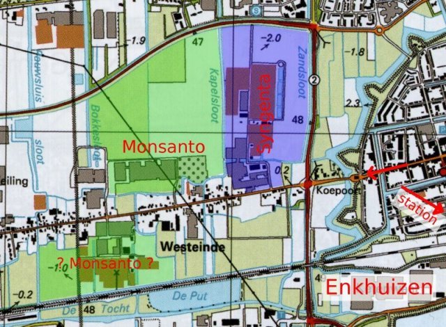 Kom ook op 2 november naar de Monsanto-vestiging in Enkhuizen. Er wordt verzameld om 10 uur voor het station Enkhuizen. Er zal een bus rijden vanuit Amsterdam. Geef je op via onderstaand emailadres.   Zoals al een keer eerder aangekondigd op Indymedia wordt er gewerkt aan een inspectieactie bij landbouwmultinational Monsanto. Dit zal plaats gaan vinden in Enkhuizen op dinsdag 2 november. Hopelijk lukt het je om mee te doen! Je kunt je als individu bij de actie aansluiten, maar het zou nog mooier zijn als je met je actiekameraden een eigen inspectie plan voorbereidt. Letterlijk naast Monsanto is er ook een vestiging van Syngenta, een ander grote multinational die in zaadgoed doet. Het zou best wel eens kunnen dat die twee bedrijven een gezamenlijke agenda hebben. Het blijkt voor veel mensen lastig te zijn om doordeweeks mee te gaan met de inspectie. Maar we willen er graag zijn op een moment dat het bedrijf geopend is. En van maandag 1 tot en met vrijdag 5 november vindt in Den Haag een internationale topconferentie plaats over landbouw en klimaat waar we de actie ook aan linken. Maar we kunnen dus nog wel wat extra deelnemers gebruiken. Hier volgt eerst wat achtergrondinformatie. Onderaan staat nog wat praktische informatie. *Voedselzekerheid ten tijden van klimaatverandering?* Van 1 tot en met 5 november komen agro-industrie, regeringen, de VN, en de Wereldbank samen in de conferentie "It's down 2 Earth" in Den Haag. Ter voorbereiding op de klimaattop COP16 eind november in Cancún, Mexico, bespreken ze technologische oplossingen. De noodzakelijke verandering van het landbouw- en voedselsysteem staat niet op de agenda. *Handen af van ons land en voedsel!* Multinationals als Monsanto, Pioneer/Dupont en Syngenta monopoliseren onze voedselvoorziening. Aan de basis staan chemische bedrijven die bestrijdingsmiddelen verkopen. Ze ontwikkelen gentechgewassen, kopen zaadbedrijven. Een sterke lobby in Den Haag en Brussel zorgt ervoor dat ze geen strobreed in de weg wordt gelegd. Grote agrobedrijven hebben andere prioriteiten dan voedselzekerheid en de bestrijding van klimaatverandering. Hun praktijken bedreigen kleinschalige landbouw en 'voedselsoevereiniteit' over de hele wereld. *Ons klimaat is niet te koop!* Een van de belangrijkste oorzaken van ontbossing en CO2-vervuiling is industriële landbouw als grote soja- en oliepalmplantages. Monsanto is fanatiek aan het lobbyen om 'carbon-credits' te krijgen voor hun genetisch gemanipuleerde Roundup-Ready-soja. Deze teelt zou bijdragen aan de CO2-reductie. In werkelijkheid vergiftigt de voor de export bedoelde sojaproductie de naburige gemeenschappen. Kleine boeren verliezen hun land en voedselproductie en belanden in de sloppen. *Voedselsoevereiniteit – geen voedselmonopolies!* De sleutel tot mondiale voedselzekerheid is voedselsoevereiniteit: lokale gemeenschappen die zelf beslissen over land, zaadgoed, water en de manier van voedselproductie. Dit kan alleen zonder winstnajagende, monopoliserende en speculerende bedrijven. Kleinschalige landbouw biedt werk aan 2,8 miljard mensen, gebruikt minder fossiele brandstoffen, houdt rekening met lokale ecosystemen en houdt de bodem gezond en vruchtbaar. Voor een duurzame, klimaatvriendelijke landbouw moeten we beginnen met de leugens van de voedselindustrie te ontmaskeren. Laten we Monsanto's Verborgen Agenda onder het voetlicht brengen. Doe mee met de Burgerinspectie! Op dinsdag 2 november wordt er om 10 uur 's ochtends verzameld voor het station in Enkhuizen. De inspectie zal beginnen bij Westeinde 161, de locatie van Monsanto Holland BV. Het kaartje hieronder geeft een indruk van de omgeving. Bij het terrein met het vraagteken heeft Monsanto in elk geval een deel van zijn activiteiten gestaakt. De hoofdvestiging zit inmiddels aan de noordzijde van de weg. Je kunt zelf natuurlijk ook even met google maps op het gebied inzoomen. Vanuit Amsterdam zal een bus rijden. Reserveer een plek via Ook als je op eigen gelegenheid naar Enkhuizen wilt is goed als je dit via bovenstaand emailadres even doorgeeft. Dan weten we waar we op kunnen rekenen. Stuur ook even een berichtje naar dat adres als je nog kunt helpen met de laatste voorbereidingen. Meer over de inspectieactie en de conferentie zal verschijnen op: http://monsantoshiddenagenda.wordpress.com |