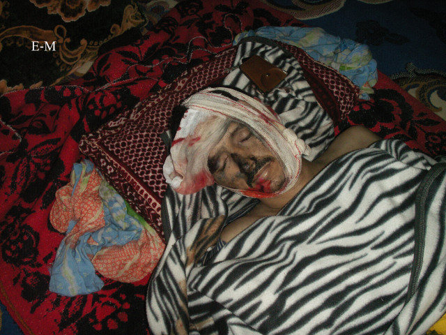Het is belangrijk om met bewijzen te komen in deze strijd omdat de Marokkaanse regering uiterst leugenachtig is. Hierbij twee foto's, de ene is van het dodelijk gewonde slachtoffer Babi Mahmoud Gargar. | |