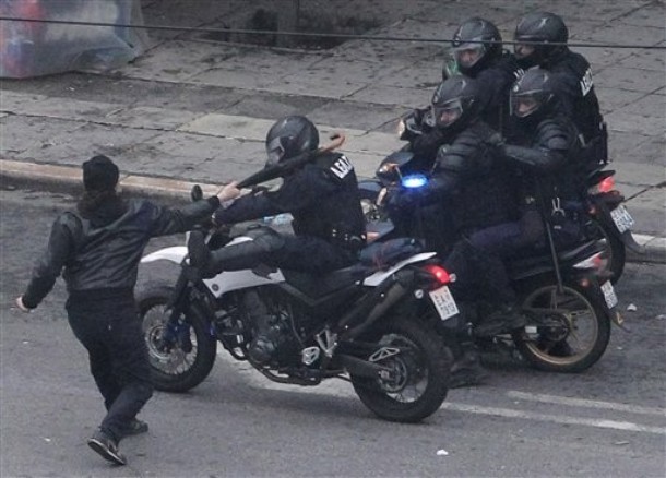 Today, it is the day of a national strike in Athens. Yesterday, the parliament voted for the abolishment of practically all collective employment agreement and practically made legal any violation of workers' rights. The first info on the strike is that it was very successful, with hundreds of thousands of people not showing up for work today.    In Athens a huge demo took place. The first estimates refer to more than 200.000 demonstrators in Athens and many thousands in other cities all around Greece. The main characteristic was that people were against the official union confederations and did not follow their demonstrations. Again, the communist party and it's unions (PAME) marched alone and very quickly. They didn't even pass next to the parliament house. The blocks of the work-floor trade unions and the student unions were massive. Riots broke out during the demo with demonstrators attacking the police and the police attacking as well and beating brutally demonstrators. It is clear that any sense of democratic principles have stopped to hold in this country. The question is not 'whether' but 'when' people are going to be killed by the police. The police in Athens attacked particularly fierce against he massive blocks of the work-floor trade unions and the student unions. No matter the fierce attacks and the injuries, the blocks did not dissolve and fought back the police. 2 video-links follow: BBC: You can see the police attack against the block of the work-floor trade unions and the resistance of the people http://www.bbc.co.uk/news/world-europe-12000605 Telegraph with riots close to the parliament and in the center http://www.telegraph.co.uk/finance/financetopics/financialcrisis/8203636/Greek-chaos-amid-general-strike-and-austerity-protests.html The demonstrators did smth very smart. This time they did not initiate riots in front of the parliament house but they continued the demo with aim to occupy the building of the national union confederation GSEE that has made an agreement (betrayal) with the government and the employers. According to the greek indymedia, when the work-floor trade unions reached the building of GSEE the police attacked hastily with motorcycles attacking the crowd and policemen pulling out their guns. The occupation attempt did not succeed. However, the police was attacked from another side by another block (according to the greek indy: the anti-authoritarian movement). The result was a riot-police van and several police-motorcycles burnt. The police is gone mad because suddenly the parliament house was left naked of protection and some demonstrators went there again. The story is still ongoing. In the last 3 days the people of a suburb of Athens (Keratea) are fighting with the police against the creation of an illegal (but very profitable for some known companies) waste-dumping place. The riot police is using (for the first time since the '70s) armoured water canons. The resistance of the people there (just locals, not a single anarchist in the area...) is remarkable. They are fighting the water canon with a local water canon (used for fires), they bring trucks full of stones to throw to the police. 3 days ago, they trapped a unit of the riot police in a field and the beated them up. Some locals went to an overlooking hill and fired warning shots to the police with rifles used for hunting. A video from Keratea: http://www.youtube.com/watch?v=NBBfSPSi0qo For more, see: http://athens.indymedia.org/front.php3?lang=el&article_id=1237676 Website: http://griekenlandisoveral.wordpress.com |