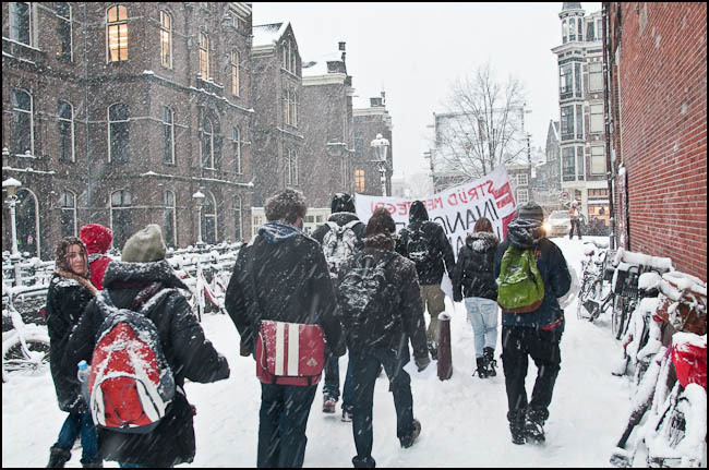 links to two videos to mobilize for Student protests one today at 15.00 Binnegasthuisterrein (Amsterdam) and second 21.01 in den Haag + other movies from demonstration of 5000 students in Amsterdam.