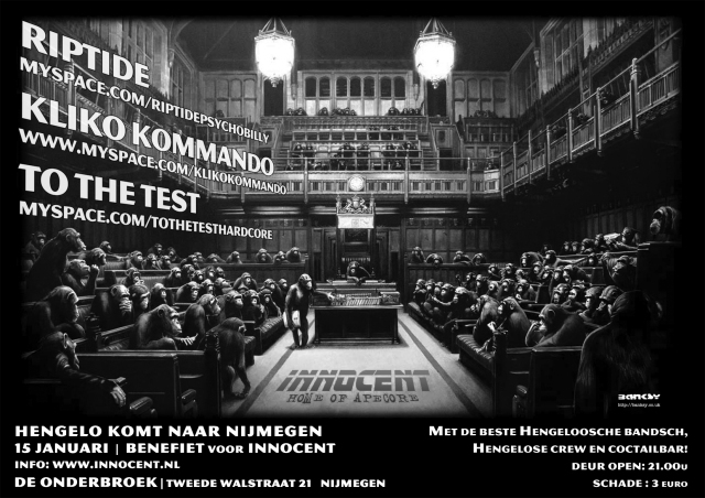 Benefiet concert om de vrijwilligers van Jongerencentrum 'Innocent' te ondersteunen, zij hebben hoge kosten gemaakt met verbouwen en dat gaan we dus ff bij mekaar zuipen..!