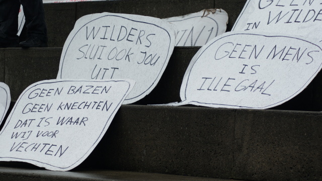 In aanloop naar de komende provinciale verkiezingen op 2 maart wordt komende zaterdag 26 februari op verschillende plaatsen in Nederland gedemonstreerd tegen het toenemende racisme en discriminatie in onze samenleving en de politiek, tegen de overheidsbezuinigingen van Wilders’ marionettenkabinet Bruin 1, en tegen de door dit zelfde Kabinet bevorderde groei van de kloof tussen arm en rijk.  Flyer demonstratie Arnhem  Flyer demonstratie Den Haag  Flyer manifestatie Friesland Veel mensen ervaren een grote woede, verdriet en angst om de toenemende verrechtsing en verharding van onze samenleving. De manier waarop steeds meer mensen door dit Kabinet en hun extreem-rechtse vrienden in het parlement worden uitgebuit en uitgesloten, hoeft niet langer door ons geaccepteerd te worden! Wij kunnen onze krachten bundelen, en hier samen tegen in verzet komen. Dit verzet moet vorm krijgen in onze eigen, directe leefomgeving; niet in de Tweede Kamer, maar in onze stad, in onze eigen straat, in onze regio kunnen we ons echt verenigen tegen de toenemende verrechtsing en de wijze waarop rechts onze samenleving in de uitverkoop heeft gegooid. In onze eigen leefomgeving zullen we Wilders en zijn rechtse Kabinet laten zien dat het verzet van onderop alleen maar groter zal worden! In Arnhem organiseren Doorbraak en de lokale actiecampagne Wilders Sluit Ook Jou Uit een demonstratie onder de leuze Samen in verzet tegen Wilders en zijn Kabinet! De organisatie roept alle arbeiders, migranten, moslims, vrouwen, uitkeringsgerechtigden, studenten, geïllegaliseerden, jongeren, en alle anderen die zich uitgesloten voelen door Wilders en zijn rechtse Kabinet, op om mee te komen demonstreren. Samen kunnen we het verschil maken! De demonstratie in Arnhem begint om 14:00 op het Gele Rijdersplein. (meer info www.wilderssluitookjouuit.nl) In Leeuwarden organiseert AFA Frylan de demonstratie ‘Het Zwarte Schaap’: ‘In de traditie van de antifascistische beweging protesteren we tegen vreemdelingenhaat maar ook tegen bredere discriminatie omdat iedereen het zwarte schaap kan worden’, aldus de organisatie in een persbericht. Deze demonstratie start om 14:30 aan de Lange Pijp (nabij de Nieuwstad) in Leeuwarden. (meer info: www.afafryslan.hyves.nl) De AntiFascistische Actie Den Haag roept eveneens op voor een lokale demonstratie tegen racisme en discriminatie. Deze demonstratie start om 14:00 op het Paul Krugerplein. (meer info: denhaagtegenracisme.wordpress.com) Wij roepen iedereen op zich bij een van deze demonstraties aan te sluiten. Laat zien dat we er genoeg van hebben, en dat we vanaf de straat terug zullen vechten tegen racisme, verrechtsing en de verharding van onze samenleving! Zet de wereld op zijn kop, organiseer van onderop! E-Mail: wilderssluitookjouuit@gmail.com Website: http://www.wilderssluitookjouuit.nl |