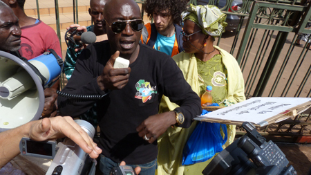 zo 10 april: "Come un uomo sulla terra" in Joe's Garage Amsterdam. Info-avond over de karavaan Bamako-Dakar met vertoning van 60 minuten durende aangrijpende Italiaanse documentaire "As a man on earth" (ondertiteld in het engels). Deze film portreteert een 3-tal Ethiopische migranten die Libië hebben doorkruist om in Italië aan te komen.  trailer: http://www.youtube.com/watch?v=QuhpfVT1NHs&feature=player_embedded De film - gemaakt in samenwerking met een migranten-videoproject - gaat ook over de deals gemaakt tussen Italië en Libië aangaande migratiestop, financiering detentiecentra, externalisatie van EU-grenzen. Externalisatie van de EU-grenzen was één van de hoofdthema's van de karavaan 'voor vrijheid van beweging en rechtvaardige ontwikkeling'. Op 27 januari vertrokken 230 activisten met 5 bussen van Bamako/Mali naar Dakar/Senegal waar het Wereld Sociaal Forum 2011 (6-11 febr.) plaatsvond. Het werd een uitbundige onderneming met onderweg veel uitwisseling met lokale initiatieven en migranten terug van of op weg naar Europa. En er is veel actie gevoerd tegen de lange arm van de Europese Unie in de strijd tegen 'irreguliere' migratie: in het Air France-vliegtuig waan een uitzetting van een Malinese Sans Papiers werd stopgezet, bij de EU-delegatie in Bamako, bij de 'EU'-grenspost in de Sahel tussen Mauretanië en Mali en bij het kantoor van Frontex - EU-agentschap voor grensbewaking - in Dakar. Het nieuw netwerk Afrique-Europe-Interact, organisator van de caravane, bestaat uit Afrikaanse en Europese zelforganisaties die opkomen voor de strijd van migranten zoals de Association Malienne des Expulés, Mouvement des Sans Voix, Nolager Bremen, Kein Mensch ist Illegaal Hanau en All Included. De onafhankelijke Afrikaanse sociale beweging bleek fragiel en uitbundig tegelijkertijd, divers van samenstelling met ingewikkelde politieke verhoudingen. De strijd voor meer democratie en sociale rechten in de Arabische wereld heeft zich tijdens de reis in West-Afrika ook doen voelen. Er is geen democratie zonder vrijheid van beweging! Voor dagverslagen, beelden van de karavaan in het nederlands: