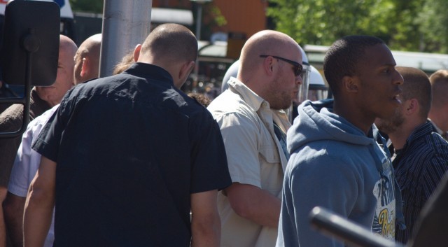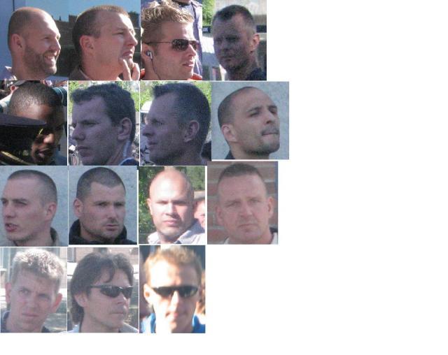 3e rij, 2e van rechts, stond bij de eerste aanval meerdere malen op iemand zijn hoofd in te beuken,terwijl die persoon op de grond lag | | highres | pr - 04.05.2011 12:53