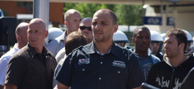 De 1e van links in de 2e rij is echt een gigantische idioot, die sprong op de geluidswagen en begon mensen naast mij helemaal in elkaar te trappen.. Eerst schopte hij richting de hoofden van mensen en toen ging hij als een beest tekeer op mensen die weerloos op de grond lagen! Deze idioot moeten ze direct uit zijn functie en van de straat halen hij is echt gevaarlijk en al die hufters moeten vandaag nog vervolgd worden voor zware geweldpleging! | | meer | meh - 03.05.2011 21:19