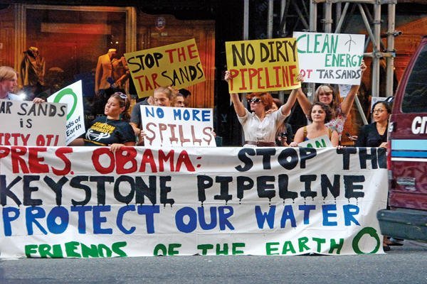Maar het project is een doorn in het oog van steeds meer milieuorganisaties en lokale bewoners. Ze gebruiken de pijpleiding om actie te voeren tegen president Obama, die er voorlopig niet in slaagt om zijn beloften aan de groene kiezers waar te maken. "Dit is een zuivere test voor Obama's belofte dat onder zijn presidentschap het stijgen van de zeespiegel zal afnemen en de planeet zal beginnen herstellen", zei Bill McKibben, oprichter van de milieuorganisatie 350.org, maandag voor de camera. Dominee Paul Mayer, medeoprichter van de Climate Crisis Coalition, deed ook mee aan de actie. "Klimaatverandering is één van de grootste morele, politieke, culturele en spirituele kwesties waarmee onze planeet kampt. De rampzalige gevolgen worden versneld door de ontginning van teerzand." Mayer heeft nog samengewerkt met Martin Luther King. "Hij heeft me geleerd dat je soms de wet moet overtreden om een hoger doel te dienen.” Broeikasgas Milieuactivisten in de VS en in Canada waarschuwen al geruime tijd voor de schadelijke gevolgen van de ontginning van de teerzanden in Alberta. "Een vat olie winnen uit teerzand is een water- en energieslurpend proces dat drie keer meer broeikasgassen uitstoot dan de productie van gewone ruwe olie", stelden klimatologen in 2008. Bovendien vrezen wetenschappers dat het transport van de olie door het Amerikaanse binnenland naar raffinaderijen in Oklahoma en Texas de habitat van vogels zal vernietigen, het milieu rond de pijpleiding zal verwoesten en de waterhuishouding van de Grote Vlakten kan bedreigen. Het project moet nog enkele administratieve hordes nemen voor er met de bouw kan worden gestart. Het Amerikaanse ministerie van Buitenlandse Zaken bijvoorbeeld heeft het licht nog niet op groen gezet. Vorige week liet Kerri-Ann Jones van het departement oceanen, milieu en wetenschap aan de pers weten dat er "geen zware impact op de natuurlijke rijkdom zal zijn langs de pijpleiding." Jones gaf toe dat tal van inheemse culturele rijkdom net als fauna en flora "aangetast" kunnen worden, maar ze verzekerde de bevolking dat het milieueffectenrapport voor Keystone XL maatregelen bevat om mogelijke schade aan het milieu te herstellen. Die verklaring stelt de wetenschappers noch de betogers gerust. Zij baseren zich op zichtbare ecologische rampen en plaatsen burgerlijke ongehoorzaamheid tegenover de financiële macht van oliemaatschappijen als TransCanada, Shell en Exxon Mobil, die hard hebben gelobbyd om hun investeringen in teerzand veilig te stellen. Voorstanders van Keystone XL stellen dat de aanleg van de oliepijpleiding de VS minder afhankelijk maakt van olie-import uit 'onvriendelijke' landen. Echter, door de afnemende vraag naar olie in de VS ligt het volgens de tegenstanders voor de hand dat de controversiële Keystone XL ook gebruikt zal worden om olie uit teerzanden via de VS naar Europa te exporteren. Vervuiling De Canadese teerzanden zijn volgens schattingen goed voor 300 miljard vaten olie. De winning van olie uit teerzand is extreem vervuilend: grote landoppervlakten worden ontgonnen, oerbossen worden gekapt, risico op meren vol giftig afval, er is een verhoogd waterverbruik en de exploitatie veroorzaakt een verhoogde emissie van broeikasgassen en verspreiding van giftige stoffen. Voor de winning van een vat ruwe olie is 0,5 - 0,65 vat olie nodig. De uitstoot van broeikasgas is voor een effectief gewonnen vat olie dus ruim 1,5 maal zo groot. In 2008 wordt er voor elk vat olie dat wordt geproduceerd circa 80 kg broeikasgas uitgestoten. Voor de winning van een vat olie is daarnaast nog 300 tot 600 liter water nodig. Gebrek aan voldoende water en arbeidskrachten vormen belangrijke logistieke problemen. De pijpleiding kan volgens woordvoerders uit de industrie ook gebruikt worden om grondwater uit de Ogallala Aquifer in het Midwesten te transporteren naar droge staten in het zuidwesten van de Verenigde Staten (VS), zoals Texas. Die staat heeft momenteel te kampen met de ergste droogte in zijn geschiedenis. Maar ook daar heeft de milieubeweging iets op tegen. "Keystone vormt een dubbele bedreiging voor de Ogallala, omdat er een olielek kan ontstaan en omdat er nu al te veel grondwater wordt onttrokken", zegt Maude Barlow van de Council of Canadians, een milieuorganisatie. Pijpleidingen die lekken zijn niet zeldzaam. Een Canadees pijpleidingbedrijf liet een jaar geleden nog 3,2 miljoen liter ruwe teerzandolie in een rivier in Michigan lopen, zegt Barlow. Ondanks grootschalige schoonmaakwerkzaamheden, kan het volgens het Amerikaanse Environmental Protection Agency (EPA) nog jaren duren voordat het werk in het stroomgebied van de rivier Kalamazoo is afgerond. Dit duurt zo lang omdat de bitumen uit teerzand zwaarder zijn dan water en veel zware metalen bevatten. Keystone 1, een kleinere pijpleiding die eigendom is van TransCanada, hetzelfde bedrijf dat Keystone XL wil aanleggen, heeft in het eerste jaar van operatie al twaalf olielekken op zijn naam staan, meldt Friends of the Earth. Het laatste lek werd in mei in North Dakota ontdekt. TransCanada wil nu 7 miljard dollar (4,8 miljard euro) investeren in de Keystone XL-pijpleiding. Export naar Europa De pijpleiding loopt van het noorden van Alberta, via de Ogallala Aquifer in Nebraska naar raffinaderijen in Texas en Oklahoma. Dagelijks kan de pijpleiding 700.000 tot 800.000 vaten ongeraffineerde teerzandolie transporteren. "Bij Keystone XL gaat het vooral over de export van diesel uit teerzand naar Europa", zegt Brant Olsen van het Rainforest Action Network in San Francisco. Uit informatie van de Amerikaanse Energy Information Administration blijkt dat de huidige pijpleidingen al te veel capaciteit hebben, zegt Ryan Salmon, adviseur energiebeleid bij de National Wildlife Federation. De pijpleidingen Keystone 1 en Alberta Clipper zijn nog maar net af en uit cijfers blijkt dat er in de komende tien jaar onvoldoende teerzandolieproductie is om die pijpleidingen en ander bestaande leidingen optimaal te benutten. Europa is