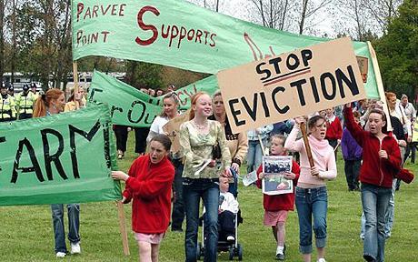Demonstrate on Saturday Sept 10 against the £18 million eviction of 90 Traveller families from their homes and Eric Pickles’s Localism bill. The eviction is likely to happen early in September and if it happens before September 10th, we will march to Dale Farm immediately The Dale Farm estate is a former scrapyard bought by Traveller families and has existed since the 1970s. Basildon Council has targeting half the community for destruction, and has failed to provide alternative sites for families to move to. Families have been given until midnight on August 31st to abandon their homes or have them bulldozed. Basildon have voted to spend a third of its budget — £8 million demolishing the estate and turning people out onto the road. The policing of what could be a three-week operation has an additional price tag of £10 million, of which £6 million is being provided by the Home Office. What’s more, Eric Pickles’s Localism bill will further destroy the Travelling community, removing the requirement of local council’s to provide alternative sites. Dale Farm Solidarity has called a demonstration starting at 1pm on Saturday Sept 10th. Join us at Wickford Train Station, a mere 30 minutes by train from London Liverpool Street Station. The march will then proceed to Dale Farm and Camp Constant, a base for human rights monitors and those who will engage in civil disobedience to stop the bulldozing. If the eviction starts before the scheduled demonstration, we will march immediately to Dale Farm. To sign up to a txt alert in case of eviction, or to spend a night at Dale Farm so that we have a constant presence there, visit https://smsalerts.tachanka.org/dalefarm/ Buses will also be available. Contact savedalefarm@gmail.com to find or confirm transport leaving from somewhere near you.