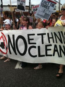 Press release: The whole world is watching International support for Dale Farm residents as hundreds march in protest at their threatened eviction, planned to begin from the 19th September   Hundreds, including a Member of the European Parliament, political and human rights groups and supporters from the local area, all over the UK and beyond marched from Wickford Station to Dale Farm on Saturday in solidarity with the beleaguered residents of the former scrapyard, how home to 100 families under threat of eviction by Basildon Council. The campaign to save Dale Farm, initially supported by local church groups and friends of the community and long given the vocal backing of figures such as Lord Avebury and Vanessa Redgrave, has been receiving messages of solidarity from Ireland, New Zealand, South Africa, and Australia, with supporters travelling from mainland Europe to stay at Camp Constant, a resistance and solidarity camp on the site. Residents were visited last week by Bishop Thomas McMahon of Brentwood and Bishop Stephen Cottrell of the Diocese of Chelmsford, and residents have outspoken support from the Jewish community. Protests are planned at British Embassies in Berlin and Dublin to show support to the families facing eviction. Kathleen McCarthy, a resident of Dale Farm, said, ‘there are people here from all over the world, I just met a girl from America who supports us. It’s great to know people are listening, and people are hearing our voices, even if our own Government isn’t.’ Richard Howitt, Labour MEP for the East of England, joined the march and spoke afterwards as supporters enjoyed lunch and a cup of tea with residents: ‘Their rights are not just for Traveller families to have a home, and for their children to have an education. But for their culture to be respected. To be able to live according to the Traveller lifestyle…. As a Member of the European Parliament I am deeply ashamed that action here in this community is bringing international opprobrium against our country. That Britain’s international reputation for tolerance, fairness and justice is being damaged at what may happen next. And that the time to listen to the criticism is now not later.’ Kartik Raj, speaking on behalf of Amnesty International, which recently sent out an Urgent Action to its members on behalf of Dale Farm, said, ‘hundreds of people are writing to Basildon Council from all over the world to express their horror at the evictions.’ The South East Region Trades Union Congress (SERTUC), No Borders, No One Is Illegal, No Sweat, and Unite Against Fascism also sent representatives who spoke out against the eviction. International pressure on the British Government is growing, with concern expressed by two different UN Special Rapporteurs, the UN Committee for the Elimination of Racism and Discrimination and the Council of Europe, and news of the planned UN visit later in September. Mr Howitt has repeatedly called for the British Government to release the Council of Europe report, to no avail. Next week the EU Agency for Fundamental Rights in Vienna will debate the evictions. The UN has spoken out strongly against the evictions, with the Committee on the Elimination of Racial Discrimination writing several times to the UK government expressing concern and calling for protection of the human rights of the families. A statement of the 2nd September called on the UK Government to suspend the planned eviction, which would disproportionately affect the lives of the Gypsy and Traveller families, particularly women, children and older people. Dale Farm is home to the largest Traveller community in the UK, a former scrapyard which was purchased by the community thirty years ago. The residents of Dale Farm have pledged to leave if alternate sites can be found, and two planning applications have been lodged which are due to be heard in October. 90% of Gypsy and Traveller planning applications are turned down, compared with 20% overall. Government inspectors have noted that Basildon has a “dire shortage” of Gypsy and Traveller sites, and have placed pressure on the Council to provide 62 pitches. Because no alternative sites have been approved, families will be forced to stay at Dale Farm or become homeless. -Press pack available at http://dalefarm.wordpress.com/press/ -Interview, comment and photos available from savedalefarm@gmail.com, 07583 761462 -For directions to get to Dale Farm, see http://dalefarm.wordpress.com/contact/ - The £18 million cost of the eviction includes £10 million for policing- £6 million of which was granted by the Home Office At the request of residents, members of the press are asked to restrict their visits to the hours of 11am-12pm and 3pm-4pm, unless by prior appointment. To make an appointment, call 07583 761462. |