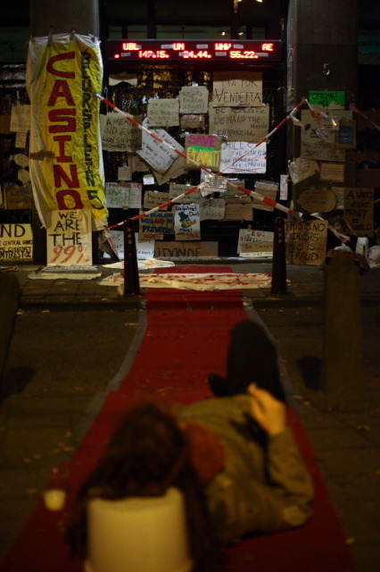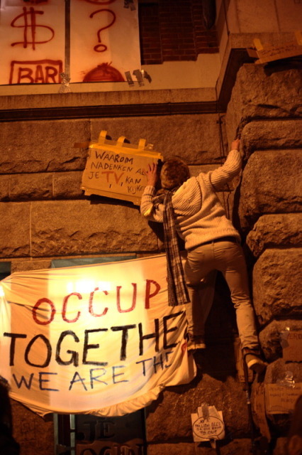 Winschoten sluit zich aan bij de Occupy-demonstraties die momenteel in heel Europa plaatsvinden. Dat meldt RTV Noord. In Nederland zijn al protesten in Den Haag en Amsterdam. Demonstranten kamperen in tentjes in die steden. Zaterdag kunnen mensen in Winschoten dat ook doen. De tentjes kunnen worden opgezet voor het het ING-bankgebouw in de binnenstad van de Groningse plaats. De Occupy-beweging protesteert tegen het kapitalisme en de graaicultuur. | |