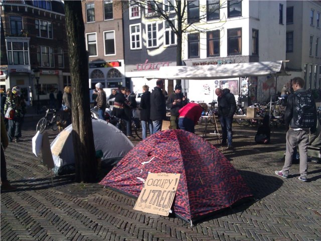 Na een aantal assemblies staan nu de eerste twee tenten op de Ganzenmarkt voor een permanent OccupyUtrecht.