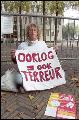 Den Haag, 17 oktober 2001 - Rond 12:00 uur heeft vredesactivist Rob Boogert zich vastgeketend aan de dranghekken voor de Amerikaanse ambassade in Den Haag. Onder het motto "Oorlog is ook terreur" protesteerde hij daarmee tegen de voortdurende bombardementen op Afghanistan. Read on... | Fotoimpressie van de voedseldropping 15-10 Max - 15.10.2001 21:23