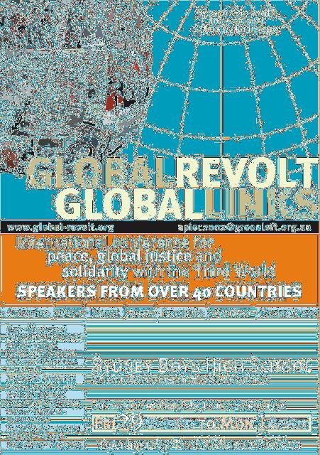 Following the success of the 50,000-strong 2nd World Social Forum in Porto Alegre, Brazil, the Asia Pacific International Solidarity Conference will discuss the formation of a regional Asia Pacific Social Forum. This will spur greater resolution and coordination of resistance to the twin dangers of war and neoliberal globalisation...   Launch of Asia Pacific Social Forum discussed Region´s activists to discuss launch of Asia Pacific Social Forum - By Iggy Kim Following the success of the second World Social Forum in Porto Alegre, Brazil, activists from throughout the Asia Pacific region will meet at the second Asia Pacific International Solidarity Conference in Sydney (Sydney Boys High School, March 29-April 1) to discuss the formation of a regional Social Forum. Held against the backdrop of a new world political climate since September 11, the 50,000-strong international gathering in Brazil demonstrated a defiant stance against Washington´s renewed militarism. It resolutely identified the struggle against neoliberal globalisation as also a struggle against war. The Sydney conference will seek to coordinate a similar front of international resistance. "In the face of escalating military and economic assaults throughout the Asia Pacific region, this is crucial", said Peter Boyle, a member of the conference organising committee. "In Aceh, the Indonesian military is unleashing an East Timor-style terror campaign. In East Timor itself, Australia´s bid to recolonise has brought hardship to workers and poor. In Papua New Guinea and several other Pacific neighbours, Australia adds the insult of turning them into penal colonies for refugees. Australia, in turn, has become a ´rogue state´, defying UN requests to inspect the refugee concentration camps. "In the Philippines, US forces are sent in under the guise of ´fighting terrorism´. In Korea, Bush´s ´evil axis´ speech has shattered hopes for peace on the divided peninsula," continued Boyle. However, in the face of this, there is also increased and reviving mass struggles throughout the region: the peace movement in Pakistan, the intensifying struggle for democracy in Malaysia, the budding workers´ movement in East Timor, the continuing resistance in the Indonesian archipelago, the reprise of Philippines people´s power and struggle against US imperialism, the development of South Korean labour militancy into political organisation. "What´s needed is to galvanise them into a regional front of resistance against the combined offensive of war and corporate globalisation," continued Boyle. The second Asia Pacific International Solidarity Conference will build on the dialogue successfully begun at the first conference in Sydney in 1998, which attracted 750 participants, including 67 international representatives. This second conference will feature activists from Aceh, Burma, Indonesia, East Timor, West Papua, Papua New Guinea, the Philippines, Pakistan, India, Bangladesh, Afghanistan, Iran, Iraq, Nepal, South Korea, Malaysia, New Zealand, as well as those from North America, Africa, Europe and Latin America. To find out more about the conference phone (02) 9690 1230, 1800 634 206 or visit the conference website at . ----------- What´s new? [ Asia Pacific Social Forum - see above ] Asia Pacific International Solidarity Conference action at Villawood refugee prison: Sunday, March 31, Meet 8.30am, Villawood train station or 7.20am at Central station, for the 7.33 train to Villawood on the platform for the Inner-West line (City to Liverpool) Latest addition to speakers: Michael Albert, founder of Z Magazine (ZNet online), and author of Looking Forward: Participatory Economics in the 21st Century (South End Press, 1991) Luis E. Pelayo, founder and President, Hispanic Council, an organisation working for the advancement of Hispanic immigrant workers E-Mail: APISC_Sydney@yahoo.com Website: http://www.global-revolt.org/ |