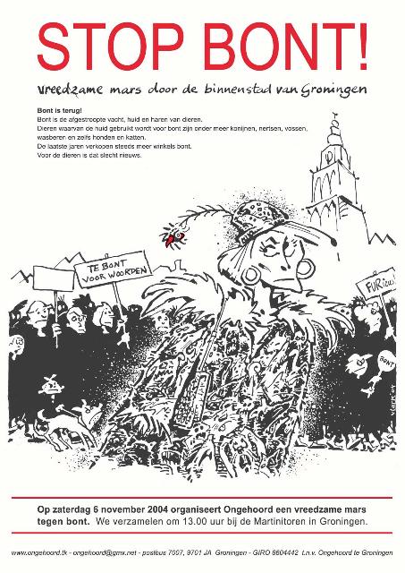 Op zaterdag 6 november zal er een grote demonstratie door de binnenstad van groningen zijn langs alle winkels die nog bont verkopen. Verzamelen 1300 uur martinitoren
