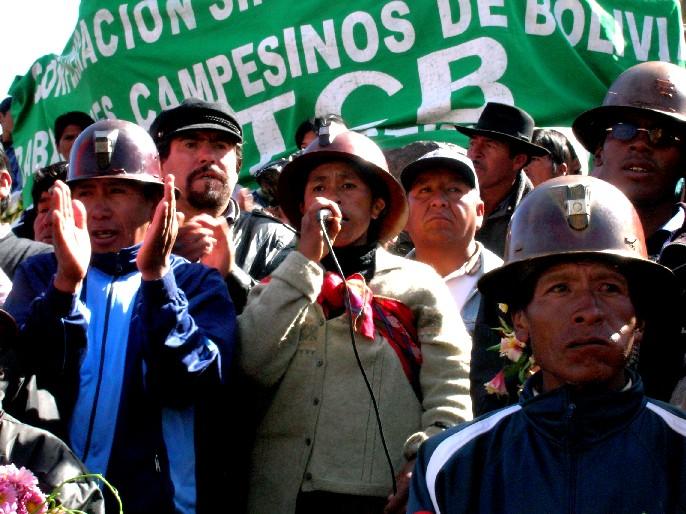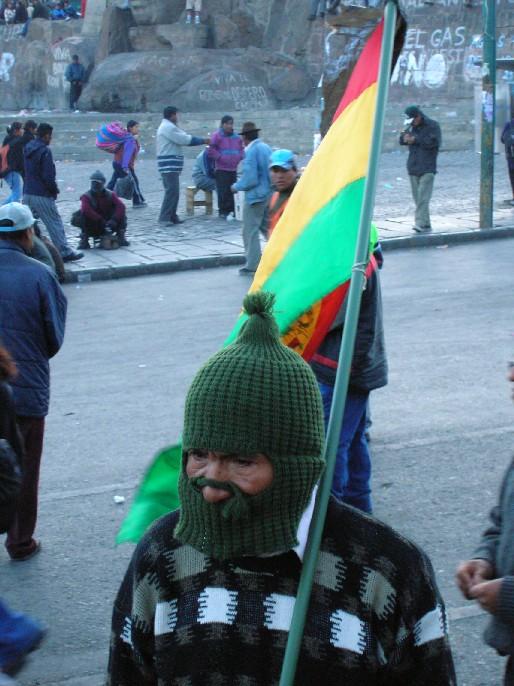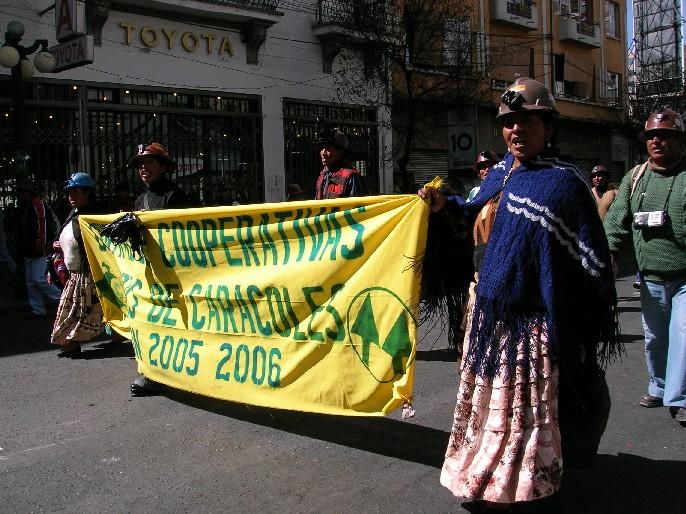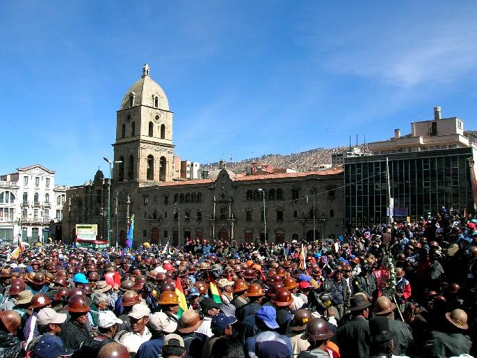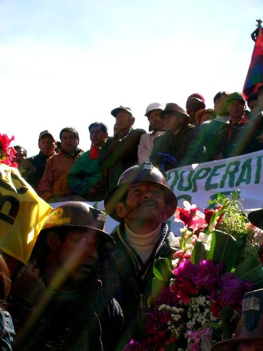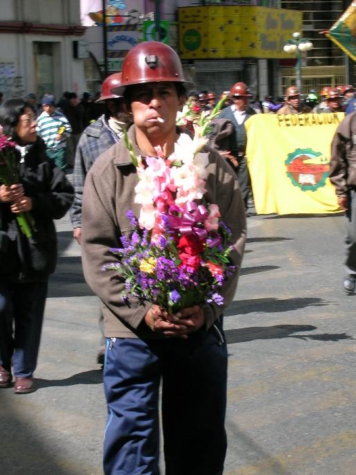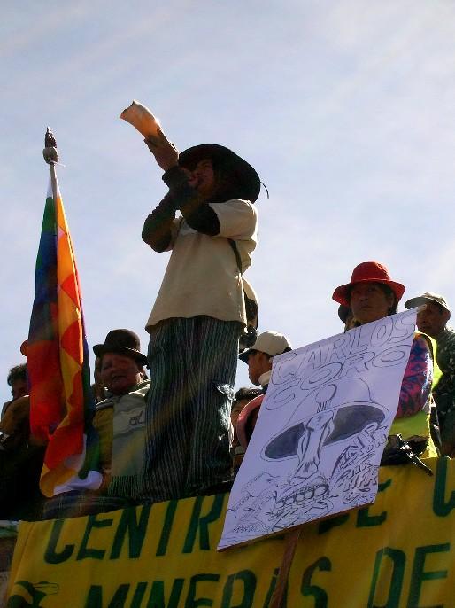Vandaag 10 juni, werd door de straten in het centrum en op het centrale plein San Francisco een symbolische rouwstoet gehouden naar aanleiding van de dood van Carlos Coro Mayta, leider van een mijnwerkerscooperatief gisteren in Yotala. Duizenden mijnwerkers en andere sympathiserende sociale bewegingen marcheerden door de straten, opgeluisterd door explosies van dynamietstaven en het aanhoudende geroep van leuzes.           Ondanks het feit dat gisteren zowel voormalig president Carlos Mesa, als zijn genoemde, door het volk ongewenste opvolgers Vaca Diez en Cosío zijn afgetreden, vervolgens Eduardo Rodríguez van het Hooggerechtshof als president is aangesteld, blijft de eis tot nationalisering van de aardgasindustrie aanhouden. Alsook de eis tot de formulatie van een nieuwe grondwet met inbreng van het volk, de asemblea constituyente. Een groot deel van de blokkades wordt daarom voortgezet, want niet enkel het aanstellen van een andere president was de eis van de sociale bewegingen, cruciaal blijft de nationalisering van de Boliviaanse aardgasindustrie. De mijnwerkers kondigden wel aan dat ze de komende tien dagen de mobilisaties zullen staken, een ultimátum voor een volgend politiek signaal. Website: http://www.bolivia.indymedia.org |