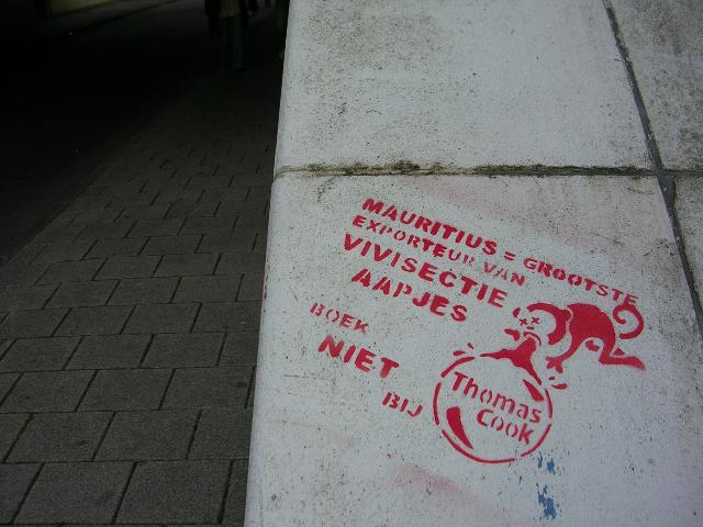 Dierproeven/Thomas Cook graffiti in Nijmegen Change dierenrechten magazine - 20.09.2005 15:01