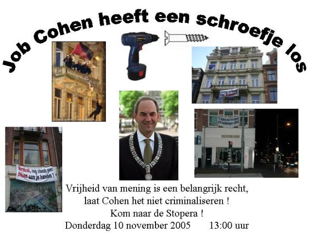 De Amsterdamse kraakbeweging legt de wapens neer. Alle accuboren zullen donderdagmiddag om 13:00h persoonlijk aan J.Cohen worden overhandigd. De VVD-fractie zal "onze burgervader" een handje helpen en de accuboren daarna "en public" handmatig omsmelten. (Helaas heeft de Stopera nog niet voldaan aan de vereisten omtrent brandveiligheid, dus dat kan nog uit de hand gaan lopen).