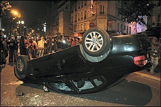 2 nights ago Riots broke out all over France after right-wing candidate Sarkozy won the presidential elections. Yesterday night barricades were built in Paris, Nantes, Lyon, Tolouse, about 800 cars burned in the cities (some as barricades), 74 police men were severly hurt, 564 protesters are detained.