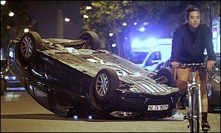 France after right-wing candidate Sarkozy won the presidential elections. Yesterday night barricades were built in Paris, Nantes, Lyon, Tolouse, about 800 cars burned in the cities (some as barricades), 74 police men were severly hurt, 564 protesters are detained.