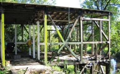 2 homeless people built a wooden roof on the ground where a building burnt down years ago [pic] - enough action to cause a brutal police raid.