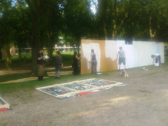 Gratis festival biedt scherp muzikaal programma, met o.a. Aux Raus en Elle Bandita Op zaterdag 19 mei vindt in Utrecht het tweede Counter Culture Festival plaats. Deze tweede editie is een stap voorwaarts: het festival wordt gehouden in Park Transwijk, is wederom gratis toegankelijk en kent een breed scala aan vooruitstrevende acts uit binnen- en buitenland. Bekendste namen zijn Aux Raus, Elle Bandita, The Suicidal Birds en de Canadees Geoff Berner, vorig jaar nog tourend in het voorprogramma van Kaizers Orchestra.  druk bezig festival op te bouwen...  We hebben WIFI, dus we zitten dit nu op het podium dit te uploaden    Verschillende krakers en politiek activisten uit Utrecht en omstreken begonnen vorig jaar dit festival als protest tegen het verdwijnen van politieke en culturele vrijplaatsen in de stad, zoals kraakpanden De Vismarkt, de Vliegende Hond en de oude Dump 2000. Tussen 14.00 tot 23.30 uur staat Park Transwijk helemaal in het teken van een divers aanbod aan scherpe, vooruitstrevende popmuziek: van stuiterende gabberpunk (Aux Raus) tot ska en polka (ADHD Spietmobiel) en van Waitsiaanse klezmer (Geoff Berner) tot dampende electro (Elle Bandita). Maar het Counter Culture Festival is meer dan muziek alleen. Naast de vele bands en dj's wordt er een workshop graffiti gegeven, zullen de deelnemers aan Bikewars meerdere fietsen in de prak rijden en zullen diverse kunstenaars de bezoekers komen verrassen met hun (interactieve) creaties, waaronder een grote bliksemmachine die de ‘s avonds laat de hemel zal verlichten. Ook is er een politieke infomarkt met kraampjes van actiegroepen zoals GroenFront!, Antifascistische Acties (AFA) en ID-NEE. Het Counter Culture Festival wil ruimte bieden aan verschillende muzikale genres en tegelijk de Utrechtse bevolking op laagdrempelige wijze laten zien wat zich op politiek en cultureel gebied in de kraakpanden afspeelt. Counter Culture is dan ook, zoals VPRO-popsite 3VOOR12/Utrecht vorig jaar opmerkte, “gezien zijn muzikale en politieke karakter een absolute aanwinst [...] voor deze stad”. Counter Culture Festival Met: Geoff Berner, Aus Raus, Elle Bandita, The Suicidal Birds, DHF, Inferno, ADHD Spietmobiel, etc. Verder: Bike wars, graffiti-workshop, beeldende kunst, politieke info-markt Zaterdag 19 mei 2007 website: www.festival-utrecht.nl Park Transwijk, Utrecht 14.00-23.30 uur Entree GRATIS! E-Mail: info(at)fetsival-utrecht(punt)nl Website: http://www.festival-utrecht.nl |