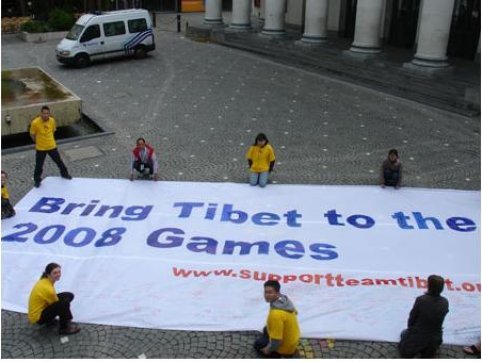 Met de presentatie van het spandoek 'Bring Tibet to the 2008 Games. Support Team Tibet.org' in Brussel, lanceerden actiegroepen en sporters deze week hun lumineuze campagne om Tibet deel te laten nemen aan de Olympische Spelen volgend jaar in China.  Leden van Tibetaanse groepen van het Internationale Tibet Support Netwerk maakten de start van de campagne eerder deze week bekend in Brussel, waar een internationale conferentie plaatsvond van Tibetaanse supportgroepen. Naast sporters van de voor de OS 2007 uitgesloten Tibetan National Sports Association, nemen Tibetaanse atleten deel aan de actie. Met de campagne maken de actiegroepen kenbaar dat Tibet een onafhankelijk land is dat recht heeft op deelname, maar wordt uitgesloten en onderdrukt door China. "China houdt Tibet nu bijna zestig jaar illegaal bezet en een Tibetaans team is niet toegelaten in Peking", zei woordvoerder Lhadon Tethong van de Olympische campagne voor Tibet bij de lancering. "Wij willen dat Tibetaanse atleten wél hun eigen vlag kunnen tonen, naast andere sporters bij de Spelen." Volgens sporthistoricus Jurryt van de Vooren op sportgeschiedenis.web zijn de Tibetanen met deze provocerende campagne "een revolutie" begonnen. "Hetzelfde gebeurde een halve eeuw geleden in de voormalige DDR, toen nog een jong en vooral geïsoleerd land. Dit zocht internationale erkenning naast West-Duitsland als communistische variant. […] En verdomd: de DDR schoot internationaal wortel. Zoals in Nederland bijvoorbeeld, dat pas in 1973 officieel het geïsoleerde land politiek erkende." Nadat het Chinese Volksbevrijdingsleger in 1950 Tibet binnenviel, beschouwt China het land als een van hun provincies. Voorheen was Tibet een onafhankelijk land, met een theocratische regering. Talloze Tibetanen strijden tegen de Chinese overheersing en voor erkenning van hun staat, en worden daarbij wereldwijd gesteund door mensenrechtenorganisaties. Sinds de bekendmaking dat China in 2008 als gastheer op zal treden voor de Spelen, roepen uiteenlopende politieke organisaties op de Spelen in Beijing te boycotten. Het is algemeen bekend dat het communistische regime in China met harde hand regeert. Burgers die kritiek hebben op het politieke beleid, lopen het risico in een strafkamp of gesticht te belanden. Executies vinden dagelijks plaats, de mensenrechten worden door de Chinese autoriteiten met voeten getreden. bron (met verwijzingen naar gerelateerde websites):