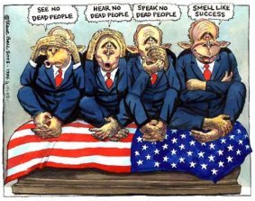 Deze week staan de media voor de verandering in het teken van Amerika. Er vinden dit jaar weer eens verkiezingen plaats, en dat zullen we weten ook! Media-indoctrinatie. Omdat ik met dit commentaar enigszins beslagen ten ijs wens te komen, heb ik vanochtend op mijn werk eventjes de door mij zeer geliefde Volksverlakkerijkrant ter hand genomen, om mij ervan te vergewissen dat ik gelijk heb.  En ja hoor, vrijwel de gehele voorpagina is opgeofferd aan het doortrapte spel dat 'democratische verkiezingen' heet. 'Hillary's snik als wondermiddel', kopt het canardblad bij uitstek paginabreed, met de hysterisch ogende actrice Hillary Clinton op de foto. Clinton schijnt namelijk razend populair te zijn in Nederland, met name onder het vrouwvolk, dus trekken vrijwel alle media ongegeneerd partij voor haar. De krant moet verkocht. Ik zal hier verder niet uitweiden over het verloop van de verkiezingscampagne in de VS. Vind ik irrelevant. Of er nou een democraat of een republikein aan de macht komt, een schurkenstaat zal de VS zijn. Amerika zal ook de komende decennia de geschiedenis in gaan als wereldoverheerser, als hét land dat de lakens uitdeelt op politiek en economisch gebied. Maar het zijn wél met bloed doordrenkte lakens. Omdat het van niemand iets te duchten heeft. De enige manier om Amerika een toontje lager te laten zingen, is door het land in de hoek te zetten. Het is stout geweest. We dienen op alle mogelijke manieren kenbaar te maken dat we de VS niet langer als wereldleider accepteren, aangezien een leider met fascistische trekjes naar westelijke maatstaven geen goed leider is. Maar het tegendeel gebeurt. 'Ook Nederland krijgt kippenvel van de Amerikaanse (voor)verkiezingen', kopt het lijfblad van 'links' burgerlijk Nederland. Als we de Volkskrant moeten geloven, hunkert Nederland naar een nieuwe bewoner in het Witte Huis. Etalages zouden nu al, een klein jaar voor de stembusuitslag, vol liggen met boeken over de Democratische malloten. Op de website kieskompas.nl beantwoordden sinds begin januari 150.000 bezoekers alle 36 vragen over de Amerikaanse verkiezingen. Op de site van Twee Vandaag kunnen dit soort mafkezen terecht voor een StemWijzer. De Balie houdt binnenkort een heuse propagandabijeenkomst voor de Democraten. Hier is sprake van een vierjaarlijks opgeblazen non-issue festijn waarmee de economische belangen van de VS als wereldleider worden gewaarborgd. Het toont aan dat de massamedia aan het handje lopen van de grote wereldleider, of die nu Bush heet of Clinton. De media, en allen die op vergelijkbare wijze de Amerikaanse verkiezingen op overtrokken wijze belichten, maken de VS belangrijker dan ze in werkelijkheid is. Voor de Amerikanen werkt het zelfbevestigend. En de consument dan, hoor ik u zeggen. Is die dan zo geïnteresseerd in de Amerikaanse verkiezingsdans? Natuurlijk niet, wat kan ons dat nou schelen. Het feit dat de media ons met die onzin overvoeren, zegt helemaal niets. Al tuinen er in toenemende mate altijd weer mensen in: hoe vaker ze hetzelfde nieuws aanschouwen, hoe belangrijker ze het gaan vinden. Het lijkt wel hersenspoeling. Desondanks is er nu al een minderheid in dit land te vinden die de komende maanden koste wat het kost de oren laat hangen naar wat er in Amerika gebeurt. Het zijn vooral de links-intellectuelen die de verkiezingsrace oh zo belangrijk en boeiend vinden. Gekluisterd aan de treurbuis, bij CNN op schoot. Terwijl juist de intellectueel beter zou moeten weten. Immers, hij staat in de regel kritisch in het leven, beweert als geen ander het verschil te weten tussen goed en kwaad, tussen ongelijkheid en rechtvaardigheid, tussen armoede en welvaart, tussen monarchie en democratie, tussen oorlog en vrede. Ja, in theorie weet de intellectueel het mooi te vertellen. Maar in de praktijk viert de hypocrisie hoogtij, zet hij z'n kritiek op Amerika even opzij om te genieten van het 'adembenemende spel' dat in het teken staat van 'het nieuwe gezicht van de wereldmacht'. I'm not amused. Alex van Veen bron: http://www.ravagedigitaal.org/2008/toestandverkiezingen/toestand.php |