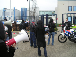 Vrijdag 7 maart, stond voor de Anti Dierproeven Coalitie weer in het teken van het onnoemelijke leed die dieren dag in, dag uit ten deel valt in vivisectielaboratoria in binnen- en buitenland.   Eerste stop was Actelion in Woerden, een belangrijk opdrachtgever van Huntingdon Life Sciences - Europa’s grootste dierproefcentrum. Met het geld van Actelion kan deze hel op aarde voor dieren blijven voortbestaan en kunnen de sadisten van HLS dieren op schandalige wijze blijven misbruiken. Zoals gebruikelijk bij Actelion laat het personeel het weer afweten in de confrontatie met de Anti Dierproeven Coalitie. Wel weerloze dieren in HLS de dood in jagen, maar zoals altijd te laf om ons onder ogen te komen. Laat staan dat zij de dieren die zij (laten) misbruiken in de ogen kunnen aankijken. Bij Actelion draait het enkel en alleen om het geld, hoe dat ‘verdient’ wordt zal hen een zorg zijn. Geld verdienen over de ruggen van onschuldige dieren is absoluut onacceptabel Actelion. Jullie gaan ons nog heel veel te zien krijgen, daar in Woerden. Als tweede target van deze actiedag gingen we op bezoek bij de apenmoordenaars van het BPRC, in Rijswijk. Aankomend op deze plek des doods stonden we oog in oog met letterlijk honderden aapjes die gevangen zitten in krappe, troosteloze uitloopverblijven. Deze dieren kunnen geen kant op en zijn overgeleverd aan de handen van meedogenloze vivisectoren. Zij moeten noodgedwongen hun wrede lot afwachten, elke dag opnieuw. Op elk moment zitten in het BPRC zo’n 1500 apen opgesloten, waaronder rhesusapen en marmosets. De Nederlandse overheid financiert deze dierenhel met belastinggeld en is tevens de belangrijkste opdrachtgever. Zo worden er uit naam van Defensie in het BPRC gruwelijke experimenten uitgevoerd op levende apen met gif- en zenuwgassen. Ook worden de dieren nog altijd gebruikt voor Aidsonderzoek wat na al die jaren nog steeds niets maar dan ook niets heeft opgeleverd. Ondertussen worden fondsen voor zinloze, onbetrouwbare en weerzinwekkende dierproeven nog altijd beschikbaar gesteld. Dit moet stoppen, dit gaat stoppen. Na een betrekkelijk lange tijd van rust, staan vanaf vandaag de schijnwerpers weer op jullie, medewerkers van het BPRC; jullie zijn doelwit in de internationale campagne tegen de wereldwijde apenhandel ten behoeve van vivisectie. We komen snel op herhaling BPRC personeel; zolang jullie dieren martelen voor geld staan we bij jullie voor de poorten! Laatste visit vandaag was Notox, gevestigd in Den Bosch. Dit bedrijf verdient graag geld met het stelselmatig vergiftigen van kleine beagle hondjes en knaagdieren. Notox is een commercieel dierproefcentrum dat op contractbasis opereert en voornamelijk bestrijdingsmiddelen en chemicalieën test. In de traditie van dit zieke bedrijf wordt bij een demonstraties van de Anti Dierproeven Coalitie 90% van de werknemers naar huis gestuurd op vrijdagmiddag om zo confrontatie met het dierenleed en gedreven activisten te voorkomen. Voor de dieren, en de Anti Dierproeven Coalitie, nog altijd pure winst. Dit soort acties treffen jullie daar waar bij jullie het gevoel ligt; in de portemonnee. Jullie hebben dan wel grootse plannen om uit te breiden, om nog meer dieren kapot te maken; de Anti Dierproeven Coalitie zal dit nooit tolereren. Wij weten ons gesteund door de Nederlandse bevolking. Mensen walgen van dierenbeulen zoals jullie Notox. We horen het elke keer weer, als we hen op straat informeren over de gruwelijkheden in dierproefcentra. Wij zullen al die dieren die hier wegkwijnen en doodsangsten uitstaan nooit vergeten en zullen nooit de andere kant opkijken. Wij gaan jullie martelkamp sluiten, Notox; vroeger of later. Totdat de laatste kooi leeg is. Zie ook het videoverslag hier: http://www.animalrights.nl/node/265 E-Mail: info AT stopdierproeven.org Website: http://www.stopdierproeven.org |