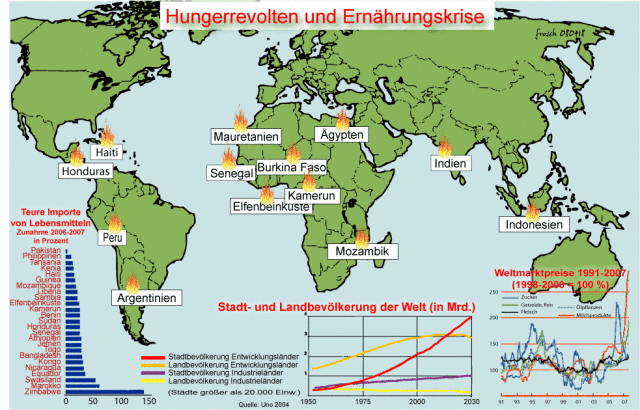 De prijzen van basisvoedsel vertonen de laatste maanden een dramatische stijging. Miljoenen mensen worden daardoor de armoede ingedreven. Geschat wordt dat er dit jaar zo'n 100 miljoen mensen extra honger zullen lijden (die komen dus bovenop de 850 miljoen die dat al deden, en die zullen het nog zwaarder krijgen).
