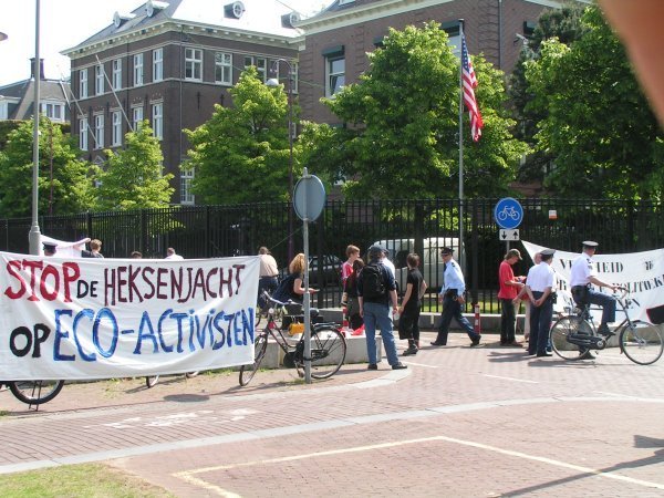 Aanstaande zaterdag is de internationale actiedag voor de (ondertussen helaas vele) activisten die in de VS achter de tralies zitten voor eco-acties.  De ontwikkelingen op het gebied van repressie tegen mensen die directe actie hebben gepleegd in de VS, zijn nog steeds even dramatisch. De meest recente veroordeling was die van Eric Mcdavid, die tot meer dan 19 jaar veroordeeld werd. Hij heeft nooit een feitelijke actie gepleegd, maar nam deel aan een groepje dat (volgens een politie-informant) plannen daartoe maakte. Hij is veroordeeld op basis van getuigenissen van een politie-informante die het groepje tevens leidde en die minstens 75.000 dollar heeft ontvangen voor haar 'werk'. Eric is zelf 19 jaar oud. Omdat hij weigerde te 'bekennen' en ook geweigerd heeft mee te werken aan het onderzoek, heeft hij nu deze ongelofelijke straf gekregen. ( http://www.supporteric.org/) Eric's veroordeling is maar een voorbeeld, er worden nog veel meer mensen vervolgd (en vele anderen dreigt zo'n lot te treffen). De vervolgingen begonnen toen de Amerikaanse autoriteiten een offensief tegen de radicale milieubeweging lanceerden die door de activisten "green scare" gedoopt werd. (zie: http://en.wikipedia.org/wiki/Green_Scare). Momenteel loopt bijvoorbeeld de rechtszaak tegen Marie Mason ( http://freemarie.org/), terwijl Briana Waters ( http://supportbriana.org/) al schuldig is bevonden en nu in de cel wacht op de strafbepaling. Ook tegen Tre Arrow ( http://trearrow.org/) loopt momenteel de rechtszaak, nadat hij uitgewezen werd uit Canada. Tre Arrow heeft, in de hoop lagere bestraffing te krijgen, wel 'bekend' maar heeft geweigerd informatie over anderen te geven. Vele anderen zijn al veroordeeld en zitten gevangenisstraf uit. Daarnaast kunnen er elk moment meer vervolgingen ingesteld worden, de dreiging richting radicale activisten in de VS is enorm, zeker gezien de veiligheidswetgeving die de VS in een politiestaat omgetoverd heeft. Zie voor meer details www.greenscare.org Directe acties De tientallen mensen die nu vervolgd worden, worden over het algemeen aangeklaagd wegens acties die geclaimed werden onder de verzamelnaam ELF (Earth Liberation Front) of ALF (Animal...) ( http://en.wikipedia.org/wiki/Earth_Liberation_Front) Bij die acties is nooit iemand gewond geraakt. Het betreft veelal acties in het kader van het tegengaan van de klimaatramp en tegen invoering van gentech in de landbouw. De 14e juni als internationale actiedag is opgestart vanuit de campagne rond een van de eerste recente eco-gevangenen, Jeffrey 'Free' Luers. Zijn campagne toont ook aan dat internationale solidariteit echt helpt. Hij was oorspronkelijk tot de verbijsterende straf veroordeeld van meer dan 22 jaar gevangenisstraf (zijn 'misdaad': vernieling van drie nieuwe SUV-auto's bij een autodealer door brandstichting bij die auto's). Bij een nieuwe rechtszaak is de straf teruggebracht tot 10 jaar. Jeffrey, die sinds 2001 vastzit, zal naar verwachting eind 2009 vrij komen!. Zie zijn website voor meer details: http://freefreenow.org/ Een van de grote problemen bij het zich verweren tegen deze ongekende staatsrepressie, is het juridische systeem dat verdachten beloont als ze zichzelf en anderen belasteren. Een deel van de verdachten is dat dan ook gaan doen, en een deel van hun getuigenissen is aantoonbaar vals (maar levert hen extra punten op). Sommige van deze verklikkers worden daardoor niet vervolgd, of zijn alweer vrij, voor dezelfde beschuldigingen die anderen tientallen jaren gevangenisstraf bezorgt. Deze personen worden uiteraard niet langer gesteund. Andere aangeklaagden besluiten wel te bekennen en aan hun eigen proces mee te werken, maar weigeren verdere medewerking aan justitie. En dan zijn er nog een stel heel moedigen die schuld ontkennen en/of elke medewerking weigeren. Die krijgen natuurlijk de hardste klappen, en hebben steun het hardste nodig. Zie voor meer details over alle zaken de website http://greenscare.org Wat te doen? Internationale solidariteit wordt zeer gewaardeerd door de vervolgden en hun vrienden en familieleden. Ook berichtgeving over hun lot in het buitenland is belangrijk. Bedenk wel dat de vervolgden (zeker als ze net midden in een proces zitten) vaak niet zitten te wachten op al te wilde acties die het de aanklager makkelijk maken hun criminalisering nog verder op te voeren. Verder is geld hard nodig, zowel voor de individuele zaken als in het algemeen. Een bureautje dat met veel te weinig middelen bergen werk verzet is CLDC ( http://cldc.org/) Daniel McGowan ( http://suportdaniel.org), een van de vele slachtoffers (tot zeven jaar veroordeeld) legt in zijn nieuwsbrief uit waarom het werk van CDLC zo belangrijk is: http://supportdaniel.org/blog/?p=33 Ook brieven, kaartjes en boeken sturen naar de gevangenen is belangrijk. De Amerikaanse detentiewetten zijn echter vaak zeer streng (en ook hierbij willen gevangenen soms niet geassocieerd worden met illegale politiek). Check hun websites voor details, of ga naar de schrijfbijeenkomsten die soms georganiseerd worden. En vergeet ook je eigen privacy niet ( http://security.resist.ca/) Maar op 14 en 15 juni is het dus vooral tijd voor internationale solidariteit: http://portland.indymedia.org/en/2008/05/375753.shtml ----------- Meer info: