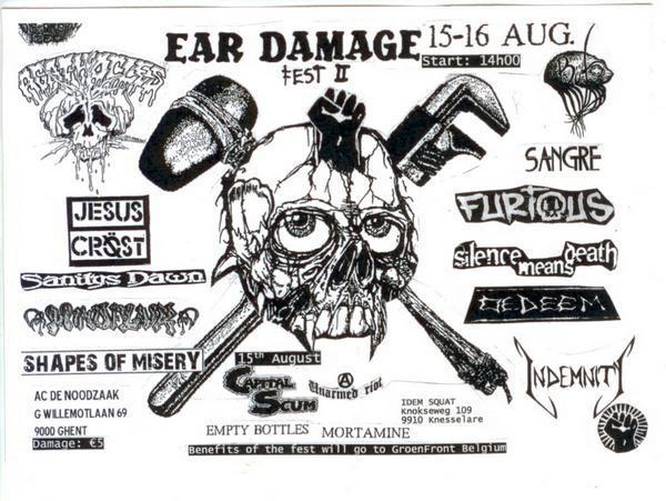 Furious (14.15 - 14.45) Hybrid Viscery (15.00 - 15.30) Oedeem (15.45 - 16.15) SMD (16.30 ? 17.00) Indemnity (17.15- 18.00) Büfo (18.15- 18.45) Jesus Cröst (19.00 ? 19.30) Shapes of Misery (19.45 ? 20.00) Mindflair (20.15 - 21.00) Sanity?s Dawn (21.15 - 22.00) The League of Mental Men (22:15 - 23:00) Sangre (23.15 ? 00.00) Terror Defence (00.00 ? 00.30) Website: http://www.groenfront.be |