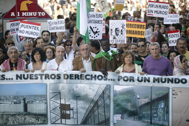 http://www.rojoynegro.info/2004/spip.php?article23682 Op de 'Assemblee van Sociale Bewegingen op zaterdagmiddag 13 september werd een verklaring aangenomen met de steun van alle deelnemende organisaties. Daarin staat een zeer duidelijke kritiek op het kapitalisme en de eis voor de onmiddellijke sluiting van detentiecentra en de regularisatie van alle 'sans papiers'. De verklaring (die binnenkort in de verschillende talen vertaald zal worden) is hier te vinden: http://www.fsmm2008.org/noticias/vernoticia.php?id=28 Een van de meest belangrijke dingen in het forum zelf was de IVe Algemene Assemblee van het Spaanse Netwerk voor Migrantenrechten (REDI in het Spaans), met de deelname van meer dan 100 afgevaardigden uit heel Spanje (Barcelona, Madrid, Valencia, Baskenland, Pamplona, Canarische Eilanden, Almería, Málaga, Sevilla,Granada, Burgos, Zaragoza, etc.) Twee belangrijke conclusies die werden aangenomen door het forum, zijn: - Op te roepen voor een Europese actiedag voor rechten van Immigranten op 18 december (internationale dag van migranten), met ten minste vier hoofdeisen: .) Europese regularisatie van alle sans papiers .) Sluiting van de detentiecentra in heel Europa .) Onmiddellijke intrekking van de Europese richtlijn over terugkeer van migranten .) Tegen precariteit en voor sociale en arbeidsrechten voor iedereen - Op te roepen voor een Europese Bijeenkomst voor Rechten van Migranten komende maart 2009 in Barcelona, Spanje. Ook was er een interessante discussie met mensen van het 9e Collectief van Sans Papiers (Frankrijk), mensen uit Italië en Engeland, waar de noodzaak besproken werd om het Europese proces van (ver)netwerken te versterken met deze twee oproepen (een gemeenschappelijke actiedag en de dringende noodzaak om een Europese bijeenkomst te organiseren om de verschillende ervaringen en strijden te leren kennen en ons werk en gemeenschappelijke doelen veel beter te coördineren). Het REDI-netwerk van Spanje zal met een afvaardiging deelnemen aan de bijeenkomst in Parijs op 17-18 oktober (zie: http://www.globalinfo.nl/content/view/1695/1/) om al deze discussies verder te voeren. (...) Wij hopen dat deze voorstellen besproken zullen worden op het komende ESF, met het doel om te komen tot een versterking van ons Europese proces van netwerken en om samen een sterk antwoord te geven op de moeilijke situatie die we momenteel in heel Europa beleven. REDI (Red Estatal por los Derechos de los Inmigrantes - Spanish Network for Immigrant Rights) (vertaling: globalinfo.nl) |