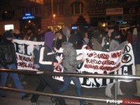 On december the 10th, after a solidarity march to the greek uprising, a police stion in Madrid was attacked by protesters.     400 people gathered at Sol in the city centre, painted and sprayed the windows of companies and too to Gran Via, the cities biggest road, to stop all the cars. After this a police stion was attacked with paint bombs, the walls sprayed with slogans. Soon the people began smash the windows and to throw stones. From all directions riot cops began to storm into the people, beat up people. 3 people were arrested, 1o hurt and 3 cops hurt. The newspaper El Pais reported that the damage done to the police station was 15 000 Euro and that 12 banks were smashed. |