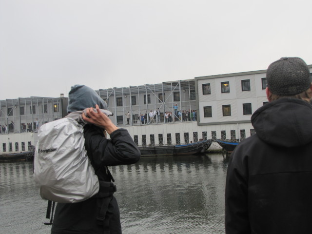 Er waren 2 eenzame dwazen op een dak, een halve kilometer van de boten, uit het zicht van de gevangenen. Een agent vertelde een demonstrant dat deze 2 figuren opgepakt zijn. Moet je die dan "verjagen"?