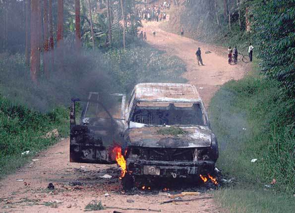 Een week voor de betoging werd een voertuig van de VN in brand gestoken, de bevolking is het meer dan beu dat er steeds meer brand wordt gesticht in burgerhuizen door het FDLR.