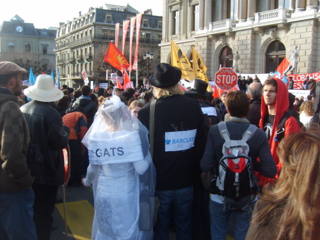 http://www.reuters.com/article/latestCrisis/idUSL9432130) On Sunday there is some counter conference: at the Salle Communale de Plainpalais, Rue de Carouge 52, Genève. http://www.anti-omc2009.org/spip.php?article17 The summit itself is from Monday - Wednesday Dec. 2. Autonomous groups in Switzerland are calling for 'direct action and blockades' during those days: http://www.autonome.ch/Mobilisation-contre-l-OMC-a-Geneve Also there will be more counter program, like the Geneva Trade and Development Symposium form ICTSD (with many crooks in the program too): http://www.ictsdsymposium.org/ Apart from that there is this caravan starting in Geneva then going via Paris, Brussels, Hamburg to Copenhagen: http://www.climatecaravan.org/ There's a newspaper made (in German) about the WTO:
