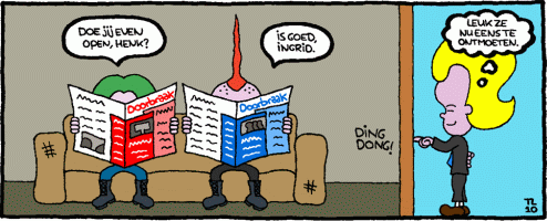 In het volgende nummer van de krant Doorbraak verschijnt de volgende toepasselijke strip, gemaakt door Tim Looten.