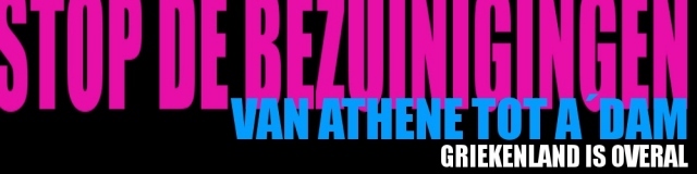 Griekenland is overal nodigt bij deze iedereen uit om op onze volgende vergadering te komen. Wij zullen hier de toekomst van onze groep bespreken, en bediscussiëren wat de beste manier is om de komende maanden het rechtse offensief tegen te gaan. Tot nu toe hebben wij twee demonstraties georganiseerd, één bij de Griekse ambassade, één in Amsterdam op 17 juli, beiden uit solidariteit met de strijd in Griekenland, maar vooral ook om de strijd in Nederland te voeren.  Eenieder die mee wil helpen met het opbouwen van een front tegen de bezuinigingen is welkom. 17 juli was een mooi begin, maar nu is het tijd om verder te gaan! De komende jaren hebben we waarschijnlijk te maken met één van de meest rechtse kabinetten uit de Nederlandse geschiedenis (zelfs als het minderheidskabinet met PVV-steun er niet komt). Als radicaal links zich nu niet verenigt, en alle individuen en groepjes blijven steken in hun eigen kleine nis, wanneer dan wel? Volgens ons is verzet nog bijna nooit zo noodzakelijk geweest: de economische crisis zal juist in het komende jaar voor veel klappen bij arbeiders zorgen, en de komende rechtse regering zal daar alles aan doen. Bovendien zal de PVV een belangrijke rol spelen, dan wel in de oppositie, dan wel toch aan de macht. Links moet aan het werk! Wij hopen jullie te zien op: Vrijdag 10 september 19.00 Wittenvrouwensingel 76 Utrecht > Everyone, who wants to connect to the struggle in Greece with the struggle against the coming austerity measures in the Netherlands is more than welcome. We aim to put a halt to the all-present exploitation and oppression, and we don't compromise with the government's tactics of seduction! We think resistance is more than necessary in a time when the media hustles about fears of a 'double dip' in economy and the next government will probably be one of the most right-wing governments in the parliamentary history of the Netherlands (even in the PVV will not join it). Wittenvrouwensingel 76 Utrecht @ 10 september, 19.00u Website: http://griekenlandisoveral.wordpress.com |