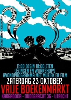 this October 23rd, the Free Bookmarket will be held in Utrecht. There will be films, workshops, a poetic ferryservice, food, music and more – and obviously a booksale – at two locations along the Oudegracht Canal in Utrecht. It'll be an inspiring event for activists and humans alike.