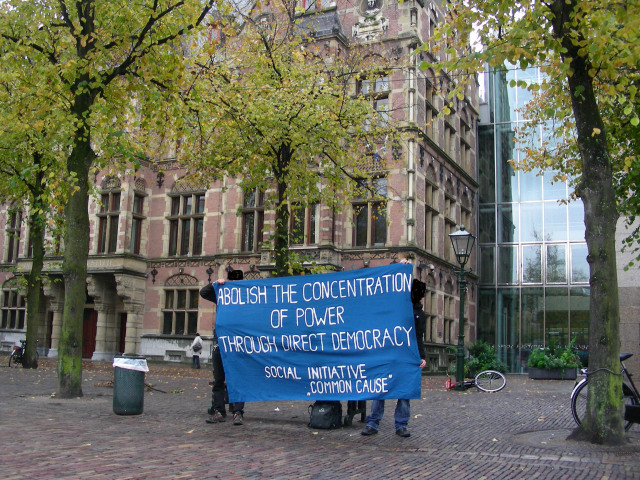 This action was a call out for the unity and protest against serious limitation of the rights to express the political opinions about current situation in the Netherlands. We were not permitted by Mayor of The Hague to demonstrate near the Dutch Parliament against the new government (supported by extreme right wing populist Geert Wilders) and it's plan for the austerity measures.