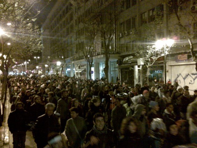 Greek Riot Police  Greek Riot Police  300 hunger strikers Update for last night events. After many hours of negotiations, an agreement was reached to transfer the 300 hunger strikers to a different building in the center of Athens. The building is large enough to accommodate everyone, clean and in well structural condition. The strikers marched to the new building with hundreds of supporters and surrounded by huge police forces. Around the streets of Athens thousands of Greek anarchists where demonstrating their support and solidarity -- loud enough for the immigrants to hear them! The immigrant strikers will continue their struggle for their right to be legal and free in a country that they have been living and working (i.e., oppressed) for many years now. This agreement, peacefully ends the latest chain of events that woke up sensitive memories to the Greek people, and for that reason, the first battle has been won. The Law School, which the hunger strikers have squatted the last two days, was in '73 the battlefield of another squat, that ended violently, against the military coop established in Greece. This led to the student revolution of the '73 where dozens of comrades were killed. Since then, all buildings that belong to a state university in Greece are protect with academic asylum, meaning that no police is allowed in. The fight for the immigrants still continues. We are all immigrants. | |