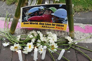 http://www.masa.ph/ ___________________________________________ Akbayan voices solidarity with the Japanese people Akbayan (Citizens Action Party) Representative Walden Bello today led a “solidarity delegation” to the Japanese Embassy here in the Philippines to express the Filipino people’s deepest sympathies to the victims of the devastating earthquake and tsunami that hit their country. The delegation also sought a dialogue with Embassy officials to get updates regarding the conditions of Filipinos in Japan. In a statement, Bello said the Philippines joins the global community in expressing its utmost solidarity with the people of Japan. “As a country and as a people, we offer our sincerest condolences to the people of Japan as they try to rise from this unparalleled disaster. Our thoughts and best wishes go with them,” Bello said. Bello said Japan is a home to many Filipinos who are working to earn a living or have migrated to the country. He described it as a “second home” to a vast number of Filipinos. “Home is where the heart is. As such, our compassion goes to Japan and its people,” Bello said. Bello who is also the Chair of the Committee on Overseas Welfare Assistance of the House of Representatives said he will attempt to coordinate with the Japanese government to provide possible assistance. “While the support and assistance we can provide as a country is limited being a poor nation, the people of Japan can rest assured that we stand ready to help in any way possible,” Bello said. Bello said one way to provide assistance is to help Japanese authorities secure the safety of Filipinos in Japan. “We express our readiness to harmonize efforts to secure the lives of Filipinos in Japan. Their safety and well-being are also important to us. Hindi natin hahayaan na mag-isa harapin ng ating mga kababayan sa Japan ang malubhang trahedya na ito,” Bello added. The “solidarity delegation” comprised of migrant rights advocates and members of Akbayan’s international committee offered flowers to embassy officials and staff. They hope that their simple and humble way will also encourage the public to express support and solidarity to the people of Japan. http://www.akbayan.org.ph/ ___________________________________________ Candlelight Vigil for Japan Quezon City: Dusk signals the beginning of darkness in the evening. An opportune time to gather in the spirit of shared identity in the struggle against nukes. In the dusk we congregated to pray and light candles for those who’ve been struck by the tragic events in Japan. The flickering candles illuminate the sullen riot of emotions brought about by grief, fear and solidarity with the plight of the Japanese people, who in the aftermath of the earthquake and tsunami are now faced with a dreadful situation, where instead of being able to plough all resources into rescue and relief efforts, the government is dealing with a crisis caused by the inherent and inescapable risks of nuclear power. Just a few days ago Greenpeace challenged legislators, particularly those who have just this week reversed their pro-nuclear stance, to author a bill that would declare the Philippines a nuclear energy-free zone. Now in a collective expression of unity, with organizations, and individual activists involved in the broader anti-nukes movement we manifest not only our feelings of loss but also our aspirations to be beacons hope for the people of Japan as well as for the many who aspire for a renewable energy future that values our lives, our livelihood and our security. Nuclear power has been proven to be an economic and environmental disaster around the world, aside from threatening peace and stability, and shrouding communities residing near nuclear power plants and waste sites under constant fear of accidents. In the candle-lit night we recognize our shared humanity with the people of Japan: the candles glimmer to console, to celebrate and to renew our commitments to the struggle –to our dreams. In the gleaming light of the candles, our hopes shine in spite of all distractions, while in prayer we break silence, and allow words to flow out of our deepest parts. Greenpeace has always fought - and will continue to fight - vigorously against nuclear power because it is an unacceptable risk to the environment and to humanity. We have the opportunity to say farewell to old, polluting energy sources and to welcome in a new, more efficient and conflict-free energy future. The flickering candles at dusk is thus a call for an Energy [R]evolution: a revolution in the way we use, produce and distribute energy. A revolution that lays down the foundation for a sustainable energy future for the Philippines that not only addresses environmental issues but also provides a stable, predictable and secure energy sector Revolution and evolution are unforgiving forces. Nobody wants to be on the wrong side of either one. But it's time to choose: all of us are either part of the [r]evolution, or we're part of the problem. And unless all of us are part of the solution, all of us have a problem.