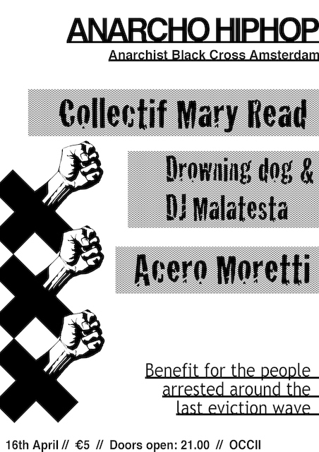 To celebrate the restart of the Anarchist Black Cross Amsterdam and as a benefit for burning cars and trashed banks: