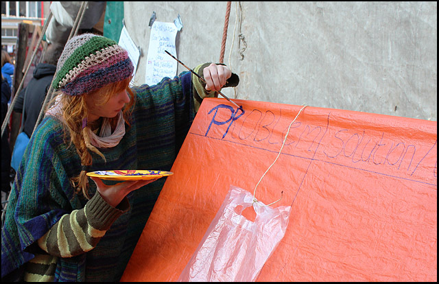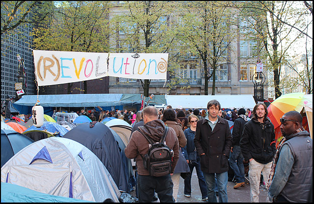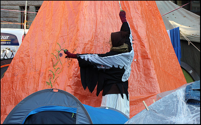 Dag 9 & 10 - Bezetting Beursplein Amsterdam. Zondag en maandag mooi zonnig weer, koude nachten. Kamp is vanaf dag 1 organisch in beweging en oogt steeds meer gestroomlijnd. Steun de bezetters met hun actie; doneer Occupy Amsterdam!