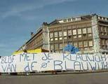 De rechtbank in Den Haag maakt vrijdag bekend of zij sloop van het bekende Haagse kraakpand De Blauwe Aanslag, een oud belastingkantoor dat in 1980 is gekraakt, toestaat. Het bestuur van Den Haag wilt het pand slopen voor verdubbeling van een autoweg. Zaterdag was er een straatfeest tot behoud van het pand [ foto's, video ]. Rond De Blauwe woedt al jaren felle strijd tegen de sloop van het monumentale complex in de Haagse binnenstad. Dit gaat vooral over de vraag of de wegverbreding noodzakelijk is. De oude verkeersprognoses waarop het sloopbesluit is gebaseerd, zijn achterhaald. Ook zijn er dwergvleermuizen rond het pand gesignaleerd, die volgens de wet absoluut niet verstoord mogen worden [ vleermuizen acuut bedreigd ]. Een aantal bewoners, verenigd in de stichting De Grote Pyr hebben inmiddels een nieuw pand die overigens nog niet is opgeleverd. Zij hebben woensdagochtend de sleutel van De Blauwe Aanslag bij de gemeente ingeleverd. Daarna zijn andere bewoners van De Blauwe, waar ook diverse bedrijfjes gevestigd waren, overgegaan tot een nieuwe bezetting. Tot een mogelijke ontruiming zendt Radio Tonka 24 uur per dag uit vanuit het enorme kraakpand, live in de Haagse ether (fm104.2) en live online (MP3). Het tijdstip van ontruiming blijft in ieder geval onduidelijk. [ Blauwe Aanslag | De Grote Pyr | Radio Tonka | Bezetting Blauwe Aanslag ] Lees verder... |  | Meedoen met Indymedia NL redactie - 30.09.2003 14:13