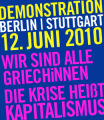 Mensen in Griekenland krijgen momenteel de volle laag van drastische bezuinigingen, doorgedrukt door de Griekse regering, onder druk van IMF, de EU - en dus ook de Nederlandse regering - en het internationale kapitaal in het algemeen. Op 27 mei hielden we - een handvol mensen met uiteenlopende achtergronden en netwerken, verenigd ín het initiatief 'Griekenland Is Overal' - een actie bij de Griekse ambassade waaraan pakweg 35 mensen deelnamen, zowel Grieken als Nederlanders. Vanwege deze actie zijn nu een stuk meer mensen betrokken bij een mogelijke follow-up. We geloven dat het nodig en ook mogelijk is om meer te doen aan protest, en om onze solidariteit te betuigen met de arbeiders, jongeren en anderen in Griekenland die tegen die bezuinigingen protesteren en zich verzetten. Lees verder... |  | Counter-info website goes live! contra-info - 10.06.2010 13:09